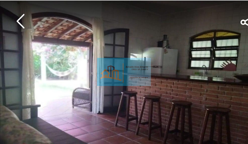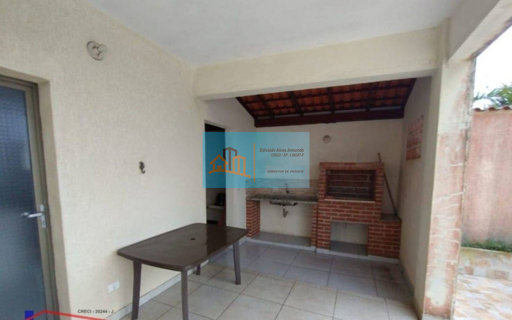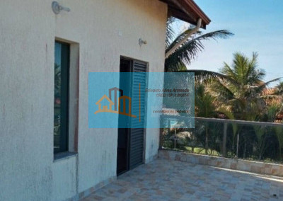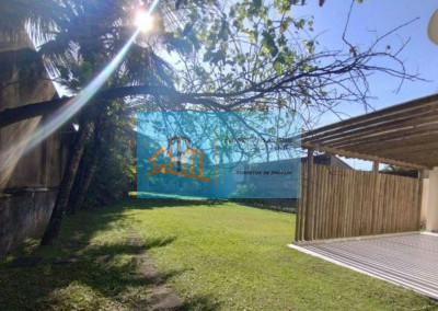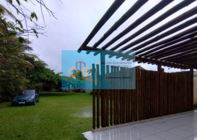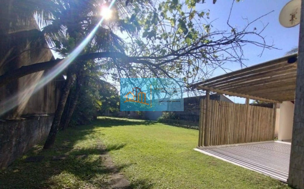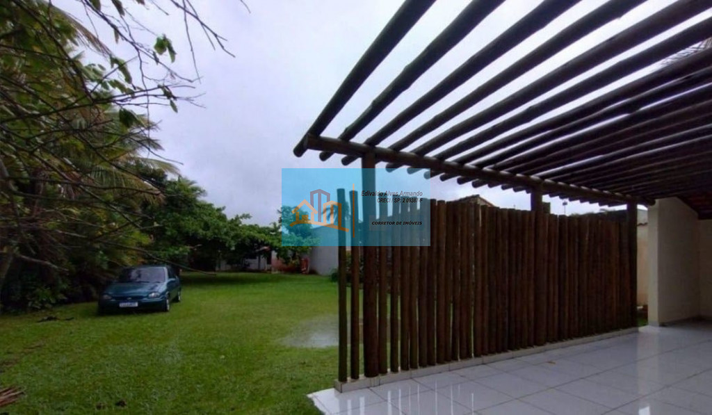 A casa possui um espaço aberto com 900m2 de área com gramado, churrasqueira, rodeado por coqueiros e muito verde.